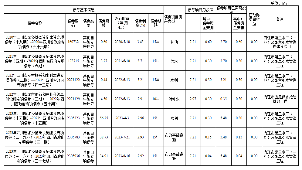截至2023年末新增地方政府專項債券情況表