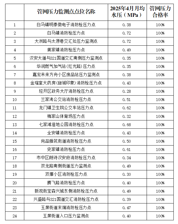 內(nèi)江市水務(wù)有限責(zé)任公司2025年4月管網(wǎng)壓力月報