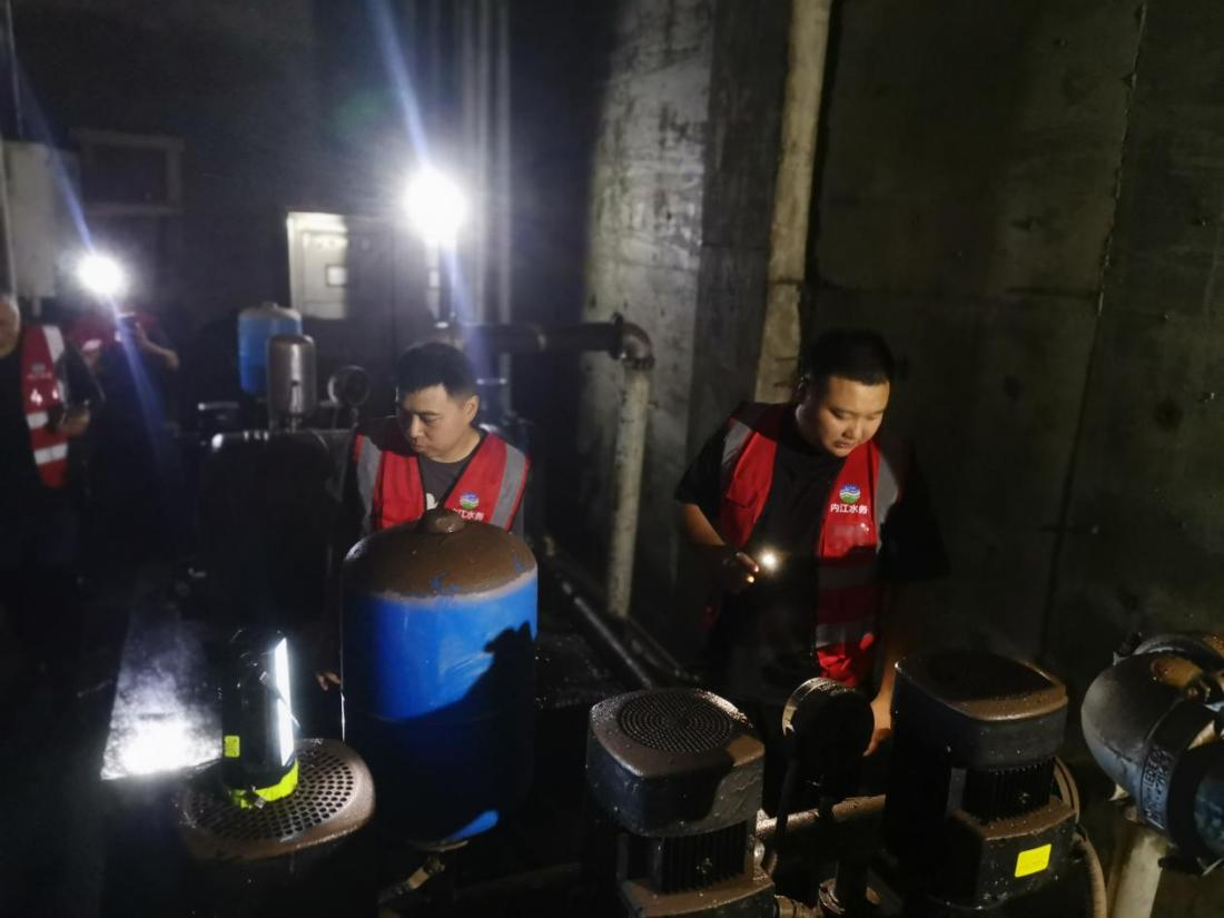 7月15日,內(nèi)江市水務(wù)有限責(zé)任公司(以下簡稱市水務(wù)公司)子公司豪鵬二次供水服務(wù)有限責(zé)任公司(以下簡稱豪鵬公司)接到該小區(qū)物業(yè)求助后,立即組織二次供水技術(shù)人員前往現(xiàn)場查看受災(zāi)情況。技術(shù)人員在對二次供水設(shè)施受損情況進(jìn)行評估后,向物業(yè)公司及社區(qū)管理人員提出二次供水設(shè)施維修指導(dǎo)意見,并幫助小區(qū)物業(yè)制定應(yīng)急供水搶險及設(shè)備搶修方案,確保第一時間恢復(fù)居民供水。同時,豪鵬公司立即聯(lián)動市水務(wù)公司客戶服務(wù)部,在受災(zāi)小區(qū)內(nèi)設(shè)置了臨時取水點(diǎn),以緩解居民用水困難。