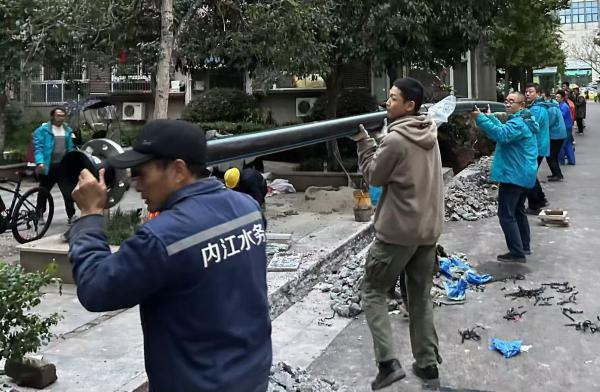 該小區(qū)管網(wǎng)設(shè)施陳舊老化,經(jīng)常出現(xiàn)水管爆裂,已經(jīng)影響居民正常生活。為切實(shí)解決問題,管網(wǎng)運(yùn)行部積極貫徹“變被動(dòng)搶修為主動(dòng)維護(hù)”的服務(wù)宗旨,與管網(wǎng)規(guī)劃部聯(lián)合,多次組織人員到現(xiàn)場(chǎng)了解用戶用水情況,查看供水管線走向和供水設(shè)施安裝位置,“量身定制”出科學(xué)可行的供水管網(wǎng)改造方案,讓改造工作實(shí)施過程中盡量降低對(duì)小區(qū)2000戶居民的生活、出行和用水影響。