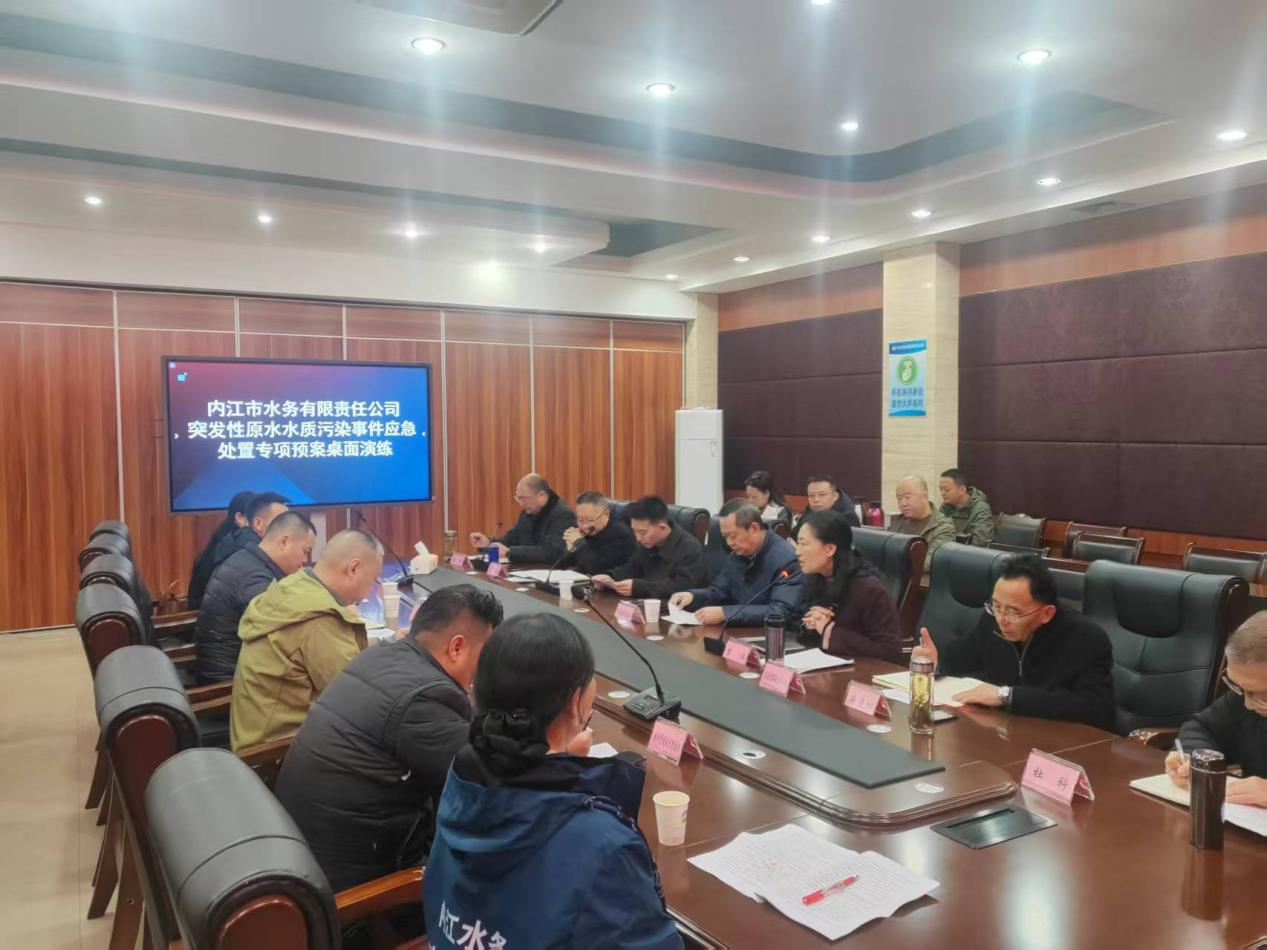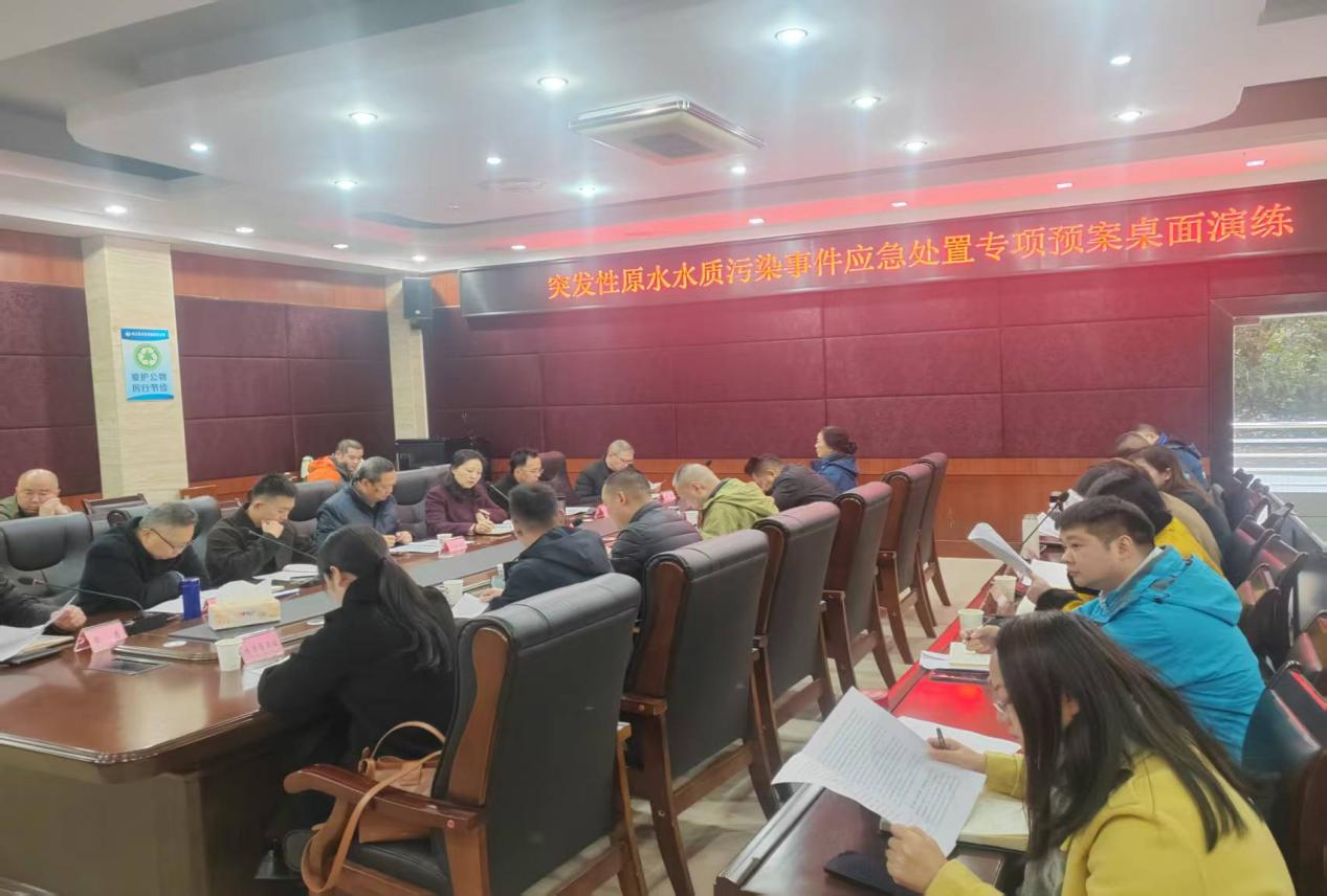 為提升公司應對突發(fā)性原水水質污染事件的處置能力,深刻吸取杭州余杭自來水異味事件的教訓,11月18日,市水務公司開展了突發(fā)性原水水質污染應急處置桌面演練。市住建局四級調研員吳志剛、公用事業(yè)科科長陳亮親臨現(xiàn)場進行指導。市水務公司黨委書記、董事長、總經理李濤等公司班子成員以及公司相關部門人員參與了此次演練。